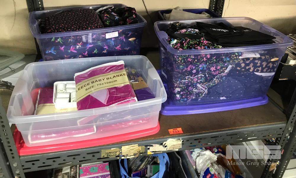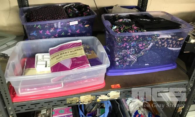 2 X PLASTIC CRATES & TUB OF ASSORTED HOME WARES, SEWING SUPPLIES, DRESS PATTERNS ETC