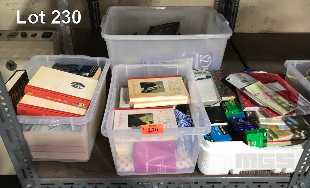 3 X TUBS OF BOOKS, OFFICE STATIONERY & HOME WARES ETC