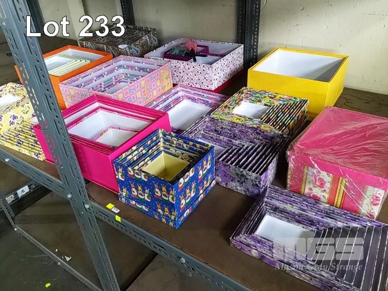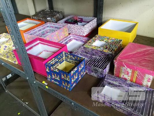 QUANTITY OF ASSORTED NESTED GIFT BOX SETS, VARIOUS SIZES AND PATTERNS. 10 x SETS, ESTIMATED 50 PLUS BOXES (2 x BAYS).
