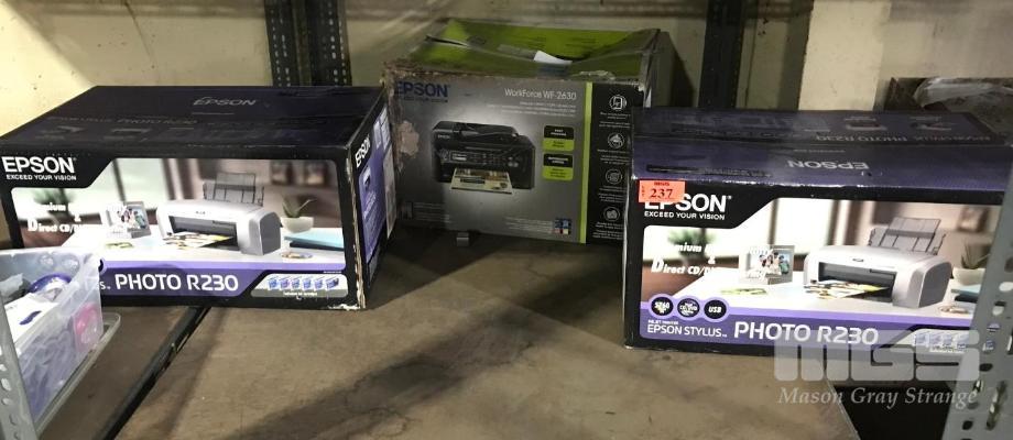 3 X COMPUTER PRINTERS, 2 X EPSON STYLUS PHOTO R230, 1 X EPSON WORKFORCE WF-2630