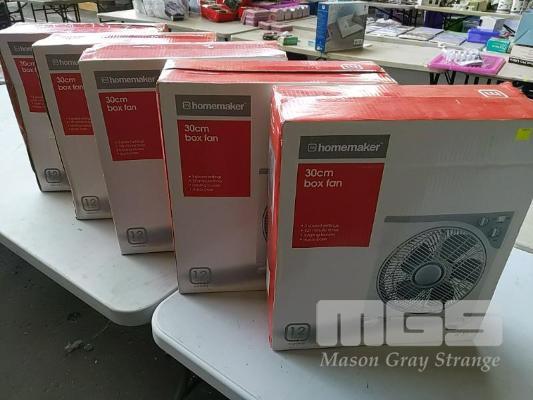 5 x HOMEMAKER 30CM BOX FANS (BF-30). ALL NEW IN BOX.