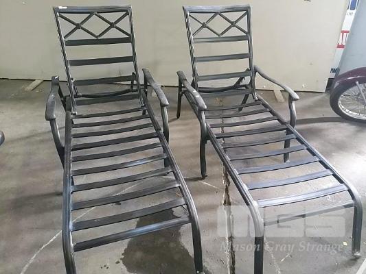 2 x ALUMINIUM SUN LOUNGE OUTDOOR CHAIRS IN BLACK (NO CUSHIONS)