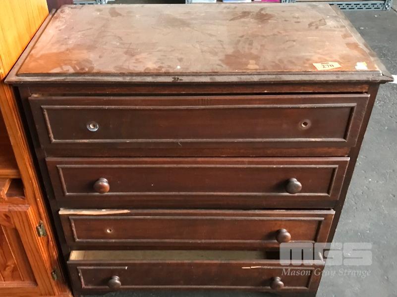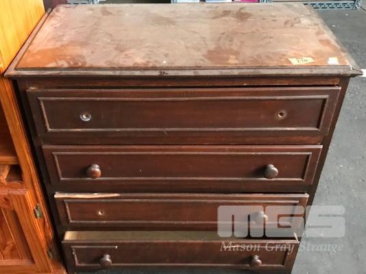 TIMBER 4 DRAWER CHEST, SOME KNOBS MISSING & CHIP TO ONE DRAWER, TO SUIT RESTORATION OR PAINTING WHITE
