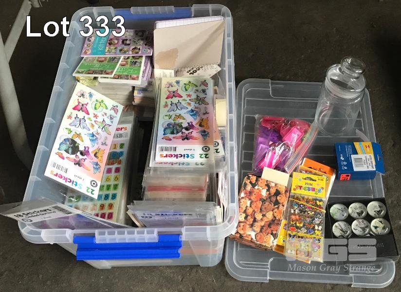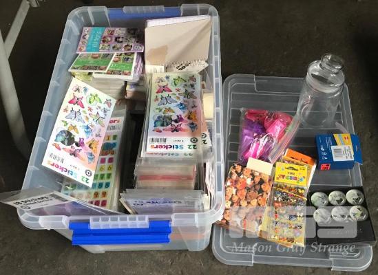 TUB & CONTENTS OF LARGE QTY OF KIDS STICKERS, ETC