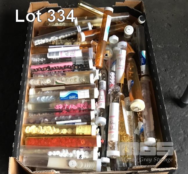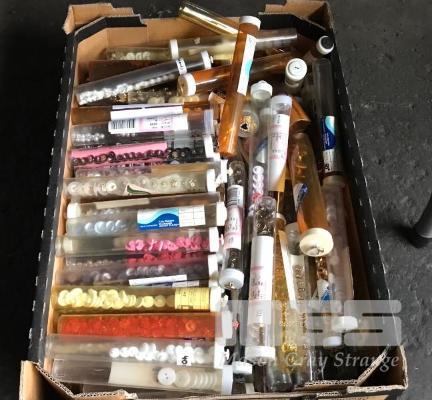 BOX OF ASSORTED BUTTONS IN STORAGE TUBES