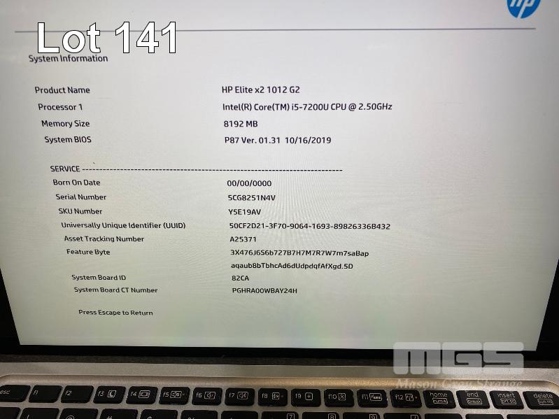 TABLET PC, HP ELITE x2 1012 G2 (Y5E19AV), CORE i5 7200U (7TH GEN) @ 2.5GHz, 8GB RAM, 256GB SSD, 12.3" TOUCHSCREEN (2736x1824), INTEL HD VIDEO, Wi-Fi, CELLULAR, WINDOWS 10 PRO INSTALLED, KEYBOARD (HSTNN-D72K) & USB-C POWER SUPPLY S/N:5CG8251N4V