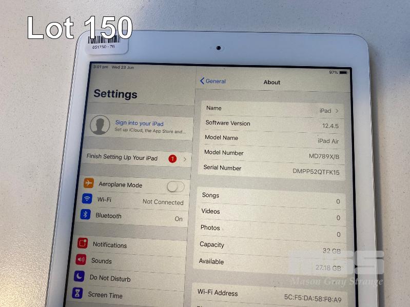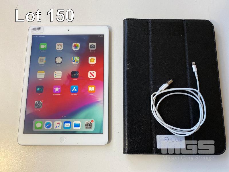 APPLE iPAD AIR, 32GB, Wi-Fi, SILVER, MODEL A1474 WITH COVER (WITH CABLE, NO CHARGER) S/N:DMPP52QTFK15