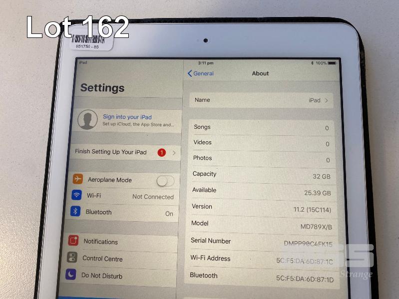 APPLE iPAD AIR, 32GB, Wi-Fi, SILVER, MODEL A1474 WITH COVER (NO CHARGER, NO CABLE) S/N:DMPP90C4FK15