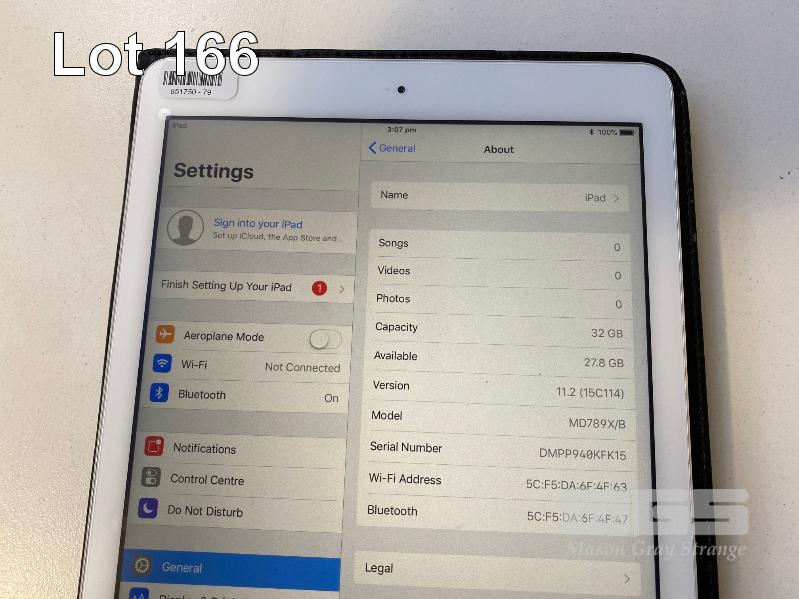 APPLE iPAD AIR, 32GB, Wi-Fi, SILVER, MODEL A1474 WITH COVER (NO CHARGER, NO CABLE) S/N:DMPP940KFK15