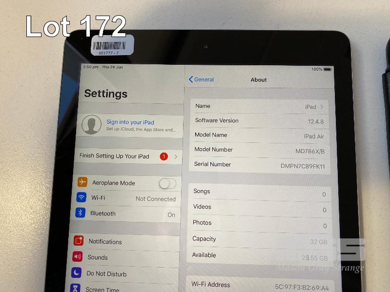APPLE iPAD AIR, 32GB, Wi-Fi, SPACE GREY, MODEL A1474 WITH COVER (NO CHARGER, NO CABLE) S/N:DMPN7C89FK11