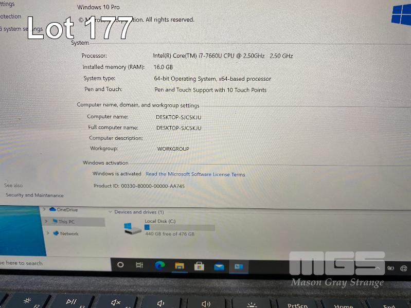 TABLET PC, MICROSOFT SURFACE PRO (5TH GEN), MODEL 1796, CORE i7 7660U (7TH GEN) @ 2.5GHz, 16GB RAM, 512GB SSD, 12.3" TOUCHSCREEN, Wi-Fi, WINDOWS 10 PRO INSTALLED, KEYBOARD TYPE COVER & POWER SUPPLY (NOTE: BATTERY NOT CHARGING) S/N:023157374153