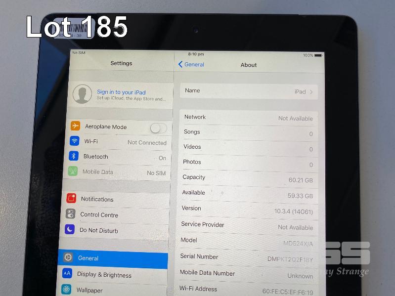 APPLE iPAD 2, 64GB, Wi-Fi, CELLULAR, SPACE GREY, MODEL A1396 (NO CABLE, NO CHARGER) S/N:DMPKT2Q2F18Y