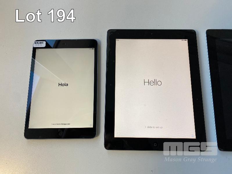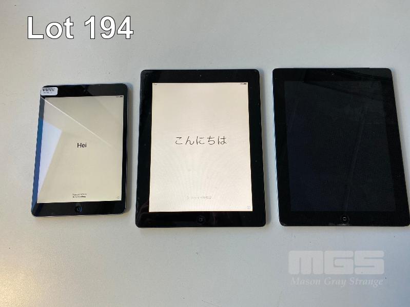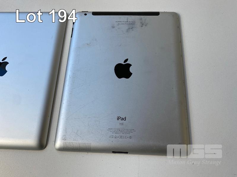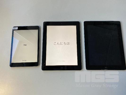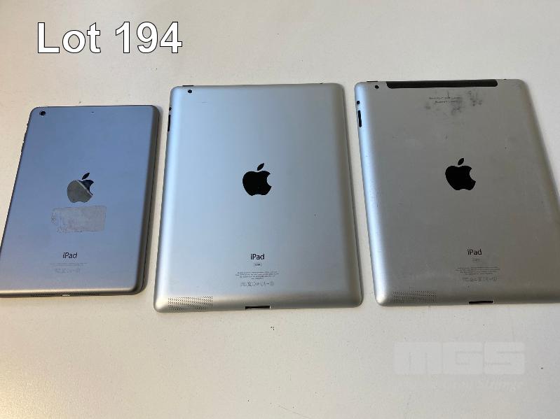 APPLE iPAD MINI 2, 32GB, A1489 APPLE iPAD 2, 32GB, MODEL A1395 APPLE iPAD 2, 64GB, MODEL A1396 (FAULTY, WILL NOT POWER ON, ENGRAVED) (NOTE: ALL LOCKED TO iCLOUD, PARTS ONLY) (NO CABLES, NO CHARGERS) S/N:F9FPRF1CFCM6, DLXGJ61ZDFHY, DLXG2N1BDFJ3