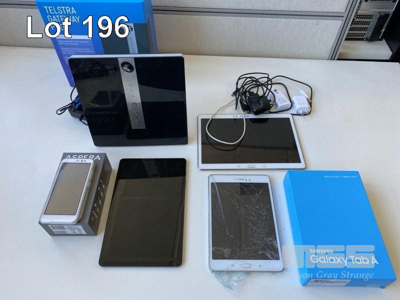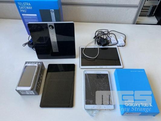3 x ASST SAMSUNG TABLET PCS (DAMAGED / LOCKED / FAULTY), TELSTRA MODEM, ASPERA JAZZ 2 MOBILE PHONE