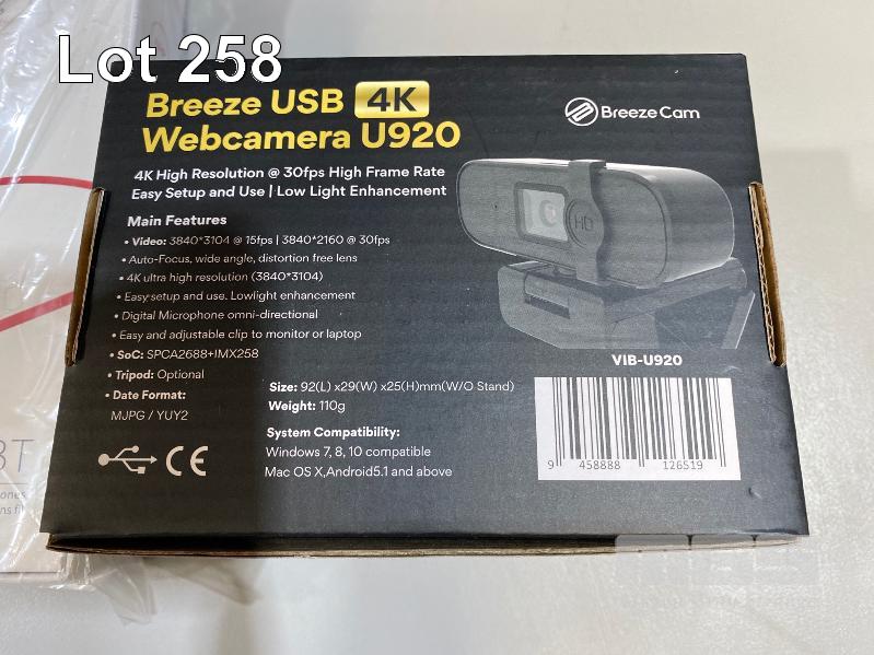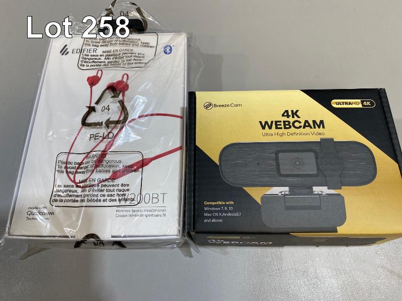 EDIFIER W200BT WIRELESS SPORTS HEADPHONES & BREEZECAM 4K WEBCAM, VIB-U920 (NEW IN BOX)