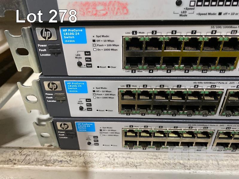 3 x HP PROCURVE 1810G-24 J9450A 24-PORT SWITCHES, 2 x HP PROCURVE 1800-24G J9028B 24-PORT SWITCHES