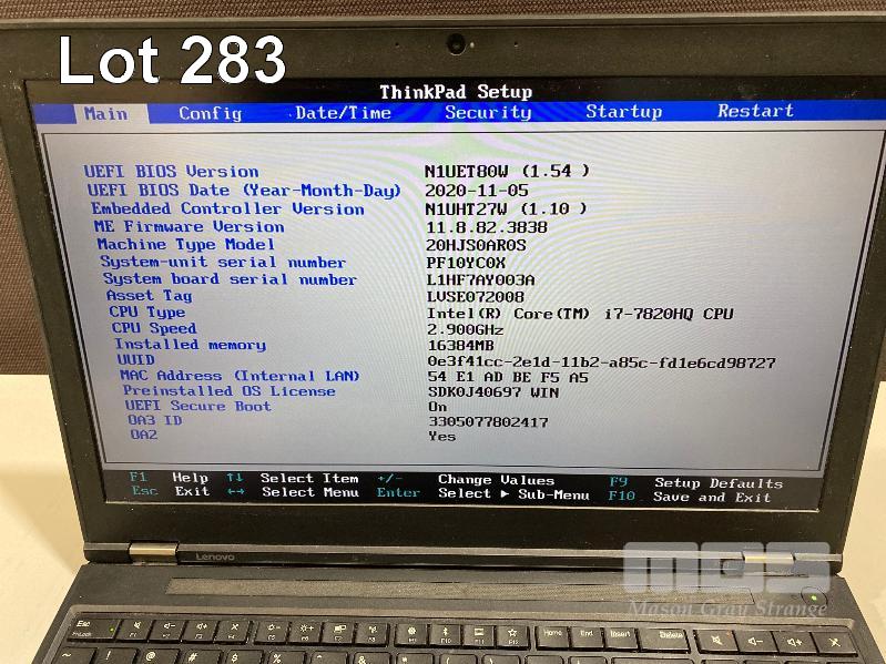 LAPTOP, LENOVO THINKPAD P51 MOBILE WORKSTATION (20HJS0AR0S), CORE i7 7820HQ (7TH GEN) @ 2.9GHz, 16GB DDR4 RAM, 256GB NVMe M.2 SSD, 15.6" WIDESCREEN (1920x1080), 4GB NVIDIA QUADRO M2200 VIDEO, Wi-Fi, BLUETOOTH, WINDOWS 10 PRO INSTALLED & POWER SUPPLY S/N:PF10YC0X