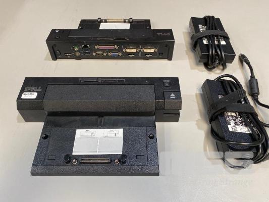 2 x DELL E-PORT PLUS LAPTOP DOCKING STATIONS, PR02X WITH 130W ADAPTERS (NO CABLES)