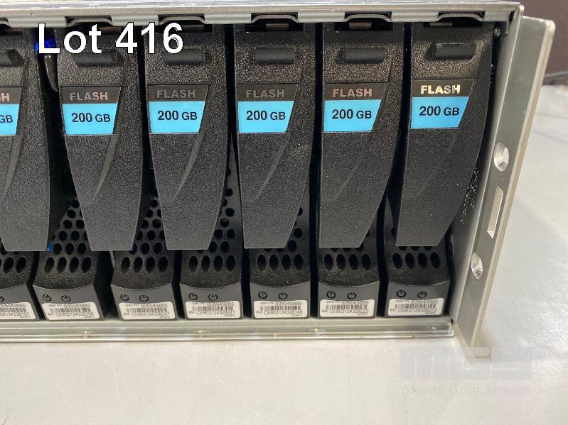 RACKMOUNT STORAGE ARRAY, DELL EMC2, MODEL KTN-STL4, 15 x 200GB SSD, 2 x FIBRE CHANNEL (303-127-000A), 2 x 400W PSU (NO CABLES)