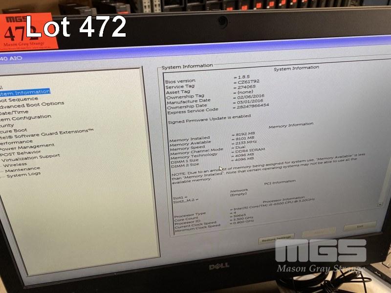 ALL-IN-ONE PC, DELL OPTIPLEX 7440, CORE i5 6500 (6TH GEN) @ 3.2GHz, 8GB DDR4 RAM, 256GB SSD, DVD-RW, INBUILT 23.8" FHD WIDESCREEN (1920x1080), INTEL HD VIDEO, WEBCAM, 8 x USB, WINDOWS 10 HOME INSTALLED, KEYBOARD & MOUSE S/N:CZ61T92