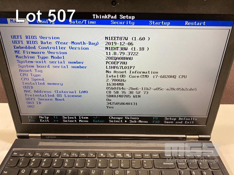 LAPTOP, LENOVO THINKPAD P50 MOBILE WORKSTATION (20EQA08HAU), CORE i7 6820HQ (6TH GEN) @ 2.7GHz, 16GB DDR4 RAM, 512GB SSD, 500GB SATA HDD, 15.6" WIDESCREEN (1920x1080), 4GB NVIDIA QUADRO M2000M VIDEO, Wi-Fi, BLUETOOTH, WINDOWS 10 PRO INSTALLED & POWER SUPPLY (NOTE: 2 x SMALL SCRATCH MARKS ON SCREEN) S/N:PC0EP70U