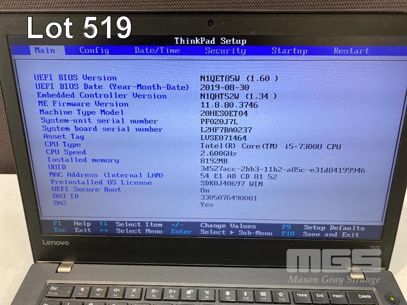 LAPTOP, LENOVO THINKPAD T470 (20HES0ET04), CORE i5 7300U (7TH GEN) @ 2.6GHz, 8GB DDR4 RAM, 256GB NVMe M.2 SSD, 14" WIDESCREEN (1366x768), INTEL HD VIDEO, Wi-Fi, BLUETOOTH, WINDOWS 10 PRO INSTALLED & POWER SUPPLY S/N:PF0Z0J7L