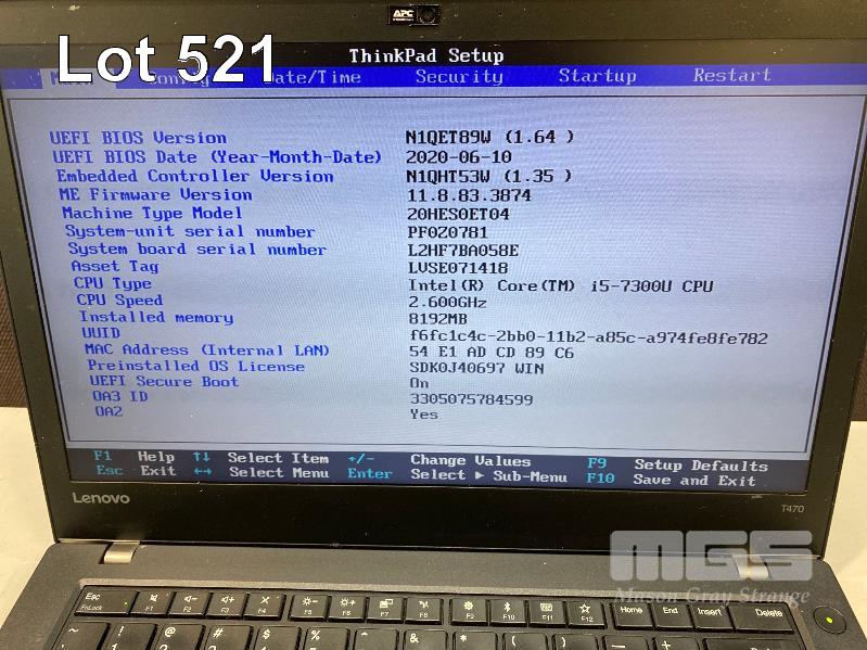 LAPTOP, LENOVO THINKPAD T470 (20HES0ET04), CORE i5 7300U (7TH GEN) @ 2.6GHz, 8GB DDR4 RAM, 256GB NVMe M.2 SSD, 14" WIDESCREEN (1366x768), INTEL HD VIDEO, Wi-Fi, BLUETOOTH, WINDOWS 10 PRO INSTALLED & POWER SUPPLY S/N:PF0Z0781