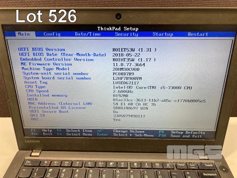 LAPTOP, LENOVO THINKPAD X270 (20HMS0CV0D), CORE i5 7300U (7TH GEN) @ 2.6GHz, 8GB DDR4 RAM, 256GB NVMe SSD, 12.5" WIDESCREEN (1366x768), INTEL HD VIDEO, Wi-Fi, BLUETOOTH, WINDOWS 10 PRO INSTALLED & POWER SUPPLY S/N:PC0RD7B9