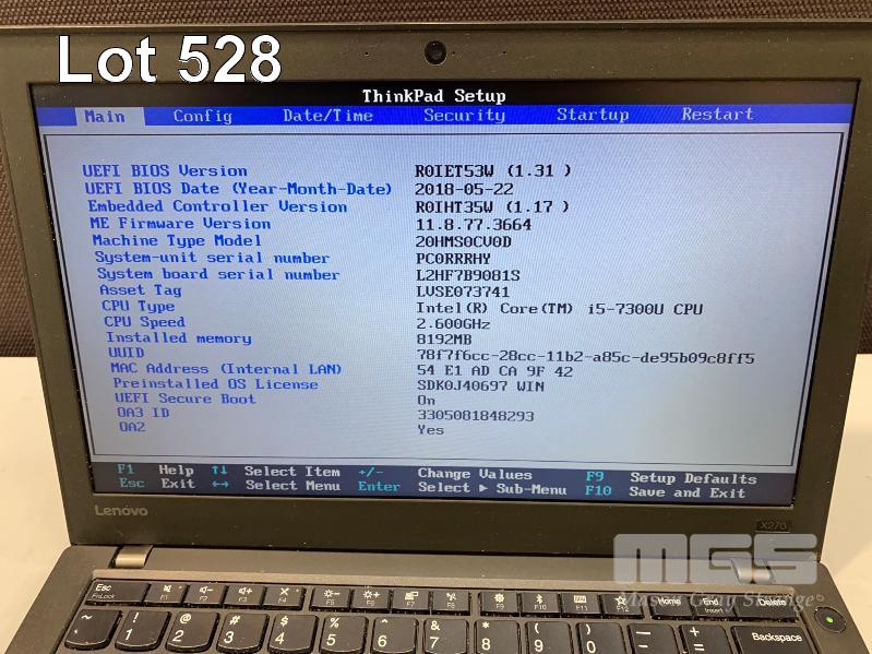 LAPTOP, LENOVO THINKPAD X270 (20HMS0CV0D), CORE i5 7300U (7TH GEN) @ 2.6GHz, 8GB DDR4 RAM, 256GB NVMe SSD, 12.5" WIDESCREEN (1366x768), INTEL HD VIDEO, Wi-Fi, BLUETOOTH, WINDOWS 10 PRO INSTALLED & POWER SUPPLY S/N:PC0RRRHY
