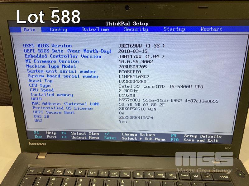 LAPTOP, LENOVO THINKPAD T450 (20BUS03705), CORE i5 5300U (5TH GEN) @ 2.3GHz, 8GB DDR3 RAM, 525GB SSD, 14" WIDESCREEN (1366x768), INTEL HD VIDEO, Wi-Fi, BLUETOOTH, WINDOWS 10 PRO INSTALLED & POWER SUPPLY (NOTE: "X" KEY LOOSE) S/N:PC0BCPE0