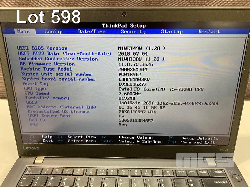 LAPTOP, LENOVO THINKPAD T470s (20HGS6M704), CORE i5 7300U (7TH GEN) @ 2.6GHz, 8GB DDR4 RAM, 256GB NVMe M.2 SSD, 14" WIDESCREEN (1920x1080), INTEL HD VIDEO, Wi-Fi, BLUETOOTH, WINDOWS 10 PRO INSTALLED & POWER SUPPLY (NOTE: KEYBOARD ISSUES, SOME KEYS NOT WORKING, MISSING "A" & "S" KEYS) S/N:PC0TE9E2