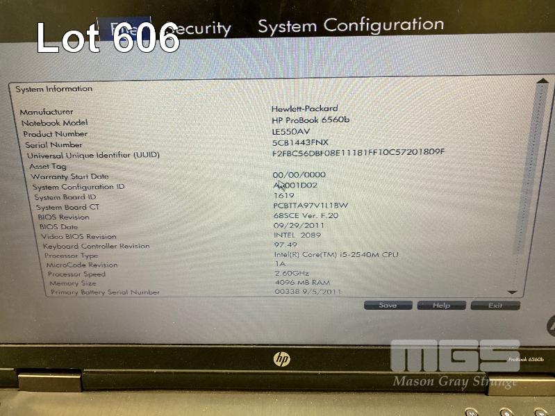 LAPTOP, HP PROBOOK 6560b (LE550AV), CORE i5 2540M (2ND GEN) @ 2.6GHz, 4GB DDR3 RAM, 250GB SATA HDD, DVD-RW, 15.6" WIDESCREEN (1366x768), INTEL HD VIDEO, Wi-Fi, BLUETOOTH, WINDOWS 7 PRO INSTALLED W/ LICENSE & POWER SUPPLY S/N:5CB1443FNX