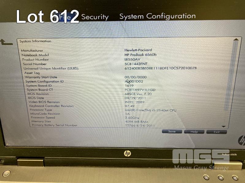 LAPTOP, HP PROBOOK 6560b (LE550AV), CORE i5 2540M (2ND GEN) @ 2.6GHz, 4GB DDR3 RAM, 250GB SATA HDD, DVD-RW, 15.6" WIDESCREEN (1366x768), INTEL HD VIDEO, Wi-Fi, BLUETOOTH, WINDOWS 7 PRO INSTALLED W/ LICENSE & POWER SUPPLY (NOTE: MAJOR SCREEN BLEMISHES) S/N:5CB1443FNT