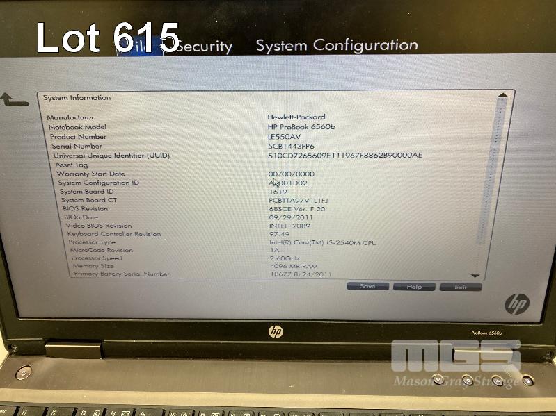 LAPTOP, HP PROBOOK 6560b (LE550AV), CORE i5 2540M (2ND GEN) @ 2.6GHz, 4GB DDR3 RAM, 250GB SATA HDD, DVD-RW, 15.6" WIDESCREEN (1366x768), INTEL HD VIDEO, Wi-Fi, BLUETOOTH, WINDOWS 7 PRO INSTALLED W/ LICENSE & POWER SUPPLY (NOTE: DAMAGE TO CASING, 'UP' ARROW KEY STUCK) S/N:5CB1443FP6