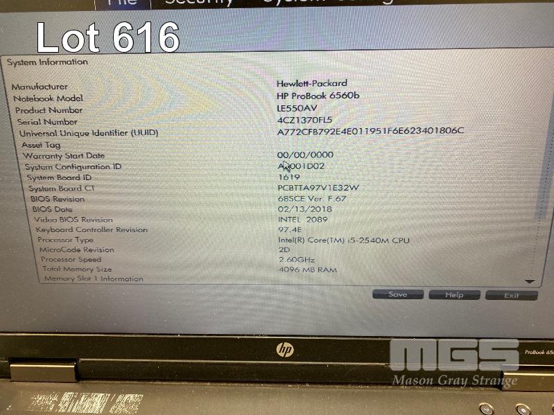 LAPTOP, HP PROBOOK 6560b (LE550AV), CORE i5 2540M (2ND GEN) @ 2.6GHz, 4GB DDR3 RAM, 250GB SATA HDD, DVD-RW, 15.6" WIDESCREEN (1366x768), INTEL HD VIDEO, Wi-Fi, BLUETOOTH, WINDOWS 7 PRO INSTALLED W/ LICENSE & POWER SUPPLY (NOTE: DAMAGE TO CASING, SCREEN LATCHES MISSING) S/N:4CZ1370FL5