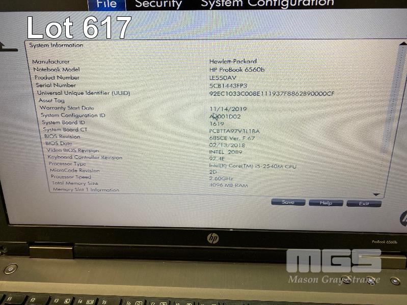 LAPTOP, HP PROBOOK 6560b (LE550AV), CORE i5 2540M (2ND GEN) @ 2.6GHz, 4GB DDR3 RAM, 250GB SATA HDD, DVD-RW, 15.6" WIDESCREEN (1366x768), INTEL HD VIDEO, Wi-Fi, BLUETOOTH, WINDOWS 7 PRO INSTALLED W/ LICENSE & POWER SUPPLY (NOTE: BATTERY NOT CHARGING, SCREEN LATCHES MISSING) S/N:5CB1443FP3