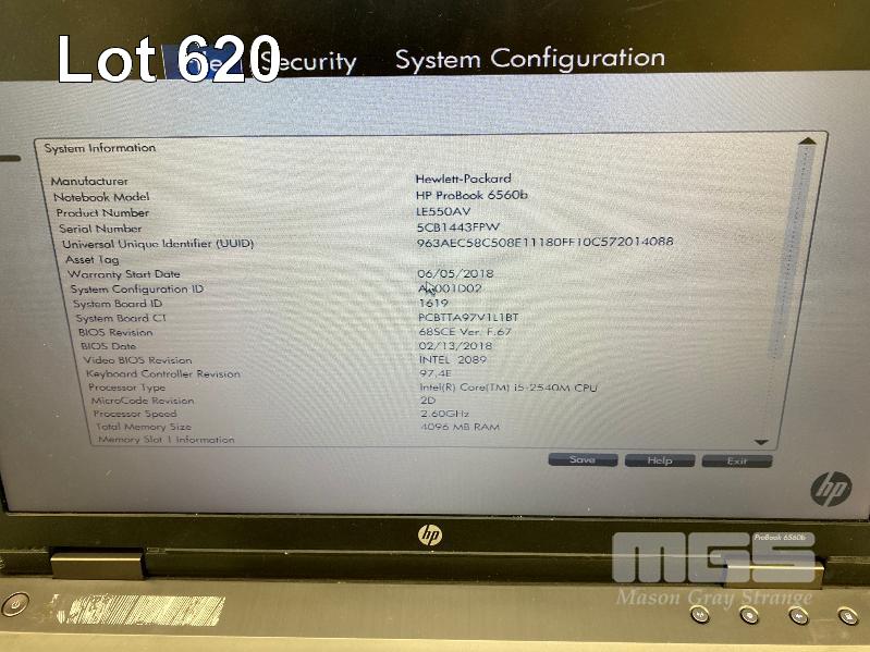 LAPTOP, HP PROBOOK 6560b (LE550AV), CORE i5 2540M (2ND GEN) @ 2.6GHz, 4GB DDR3 RAM, 250GB SATA HDD, DVD-RW, 15.6" WIDESCREEN (1366x768), INTEL HD VIDEO, Wi-Fi, BLUETOOTH, WINDOWS 7 PRO INSTALLED W/ LICENSE & POWER SUPPLY (NOTE: DAMAGE TO RUBBER SEAL AROUND SCREEN) S/N:5CB1443FPW