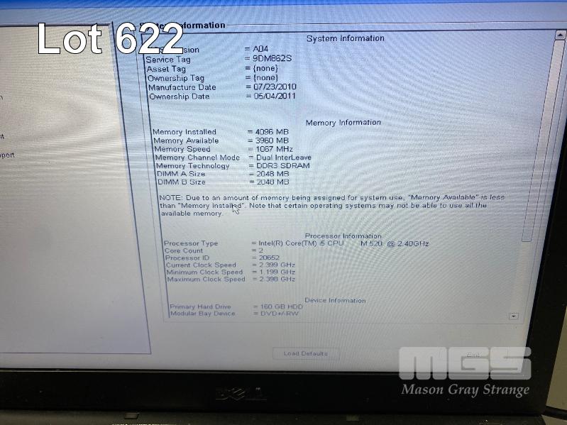 LAPTOP, DELL LATITUDE E6410, CORE i5 M520 @ 2.4GHz, 4GB DDR3 RAM, 160GB SATA HDD, DVD-RW, 14" WIDESCREEN (1440x900), INTEL HD VIDEO, Wi-Fi, WINDOWS 7 PRO INSTALLED W/ LICENSE & POWER SUPPLY (NOTE: BATTERY NOT CHARGING) S/N:9DM862S