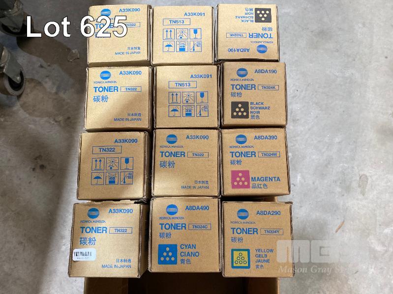 12 x ASST KONICA MINOLTA PHOTOCOPIER TONER CARTRIDGES INC. 5 x TN322, 1 x TN324M, 1 x TN324C, 1 x TN324Y, 2 x TN513, 2 x TN324K