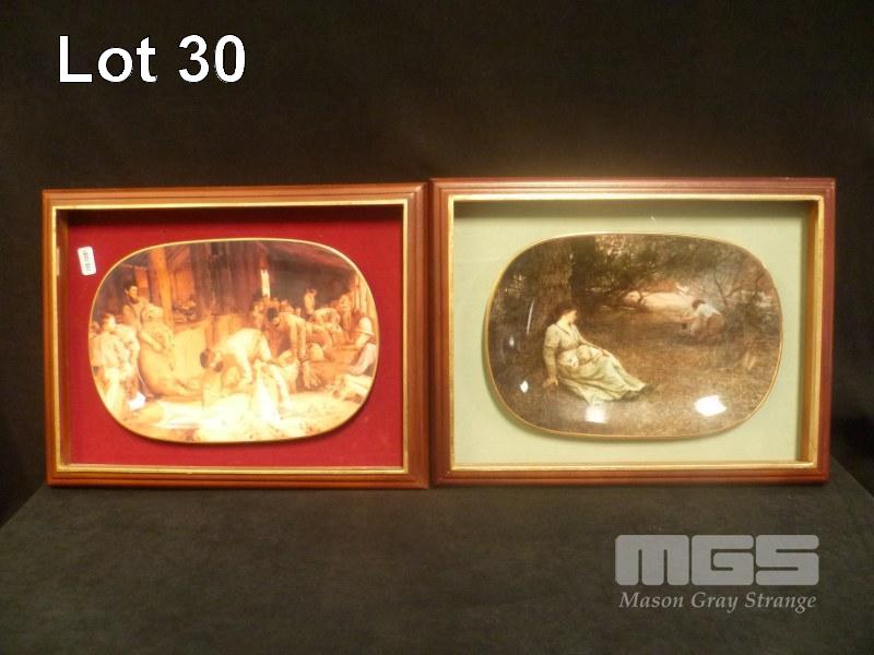 2 x FRAMED BRADEX DISPLAY PLATES INC 1998 ON THE WALLABY TRACK BY FREDRICK MCCUBBIN, PLATE NUMBER 0517 & 1997 SHEARING THE RAMS BY TOM ROBERTS, PLATE NUMBER 2435