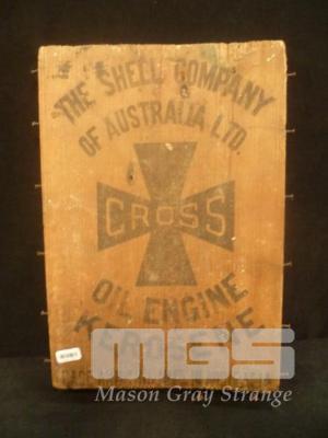TIMBER CRATE END, SHELL COMPANY OF AUSTRALIA CROSS-OIL ENGINE KEROSENE