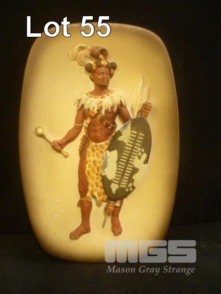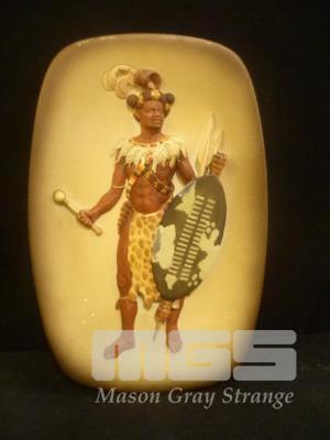 1959 HAND PAINTED PLAQUE, AFRICA WARRIOR, BY WH BOSSONS LTD