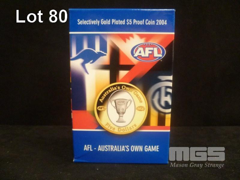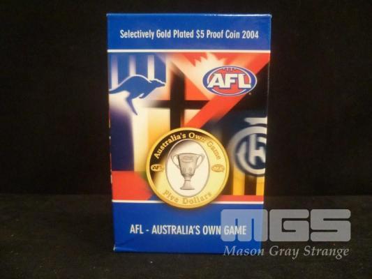 2004 $5 PROOF 1OZ FINE SILVER "AFL SELECTIVELY GOLD GOLD PLATED"COIN