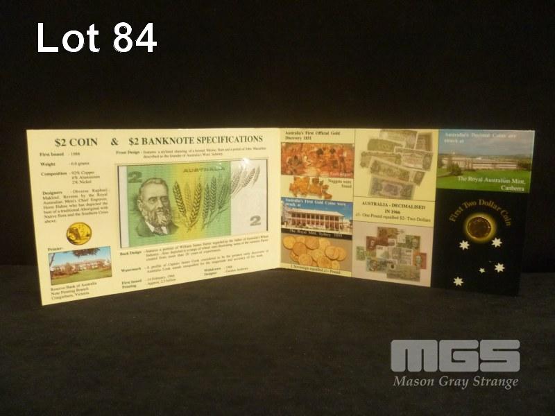 1985 LAST $2.00 NOTE AND 1ST 2 DOLLAR COIN IN FOLDER UNC