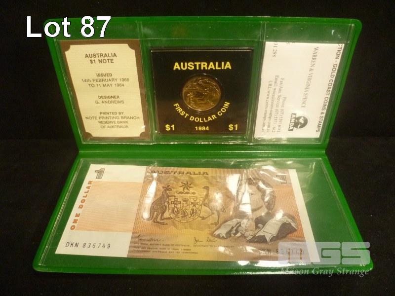 1984 LAST DOLLAR NOTE & 1ST DOLLAR COIN IN FOLDER UNC