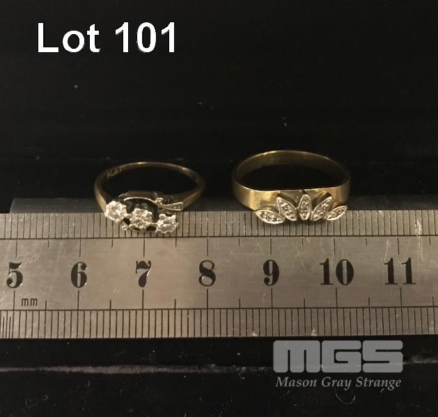 2 X GOLD & DIAMOND RINGS, MARKED 18CT, 1 X SET WITH 3 X SMALL DIAMONDS 2.6 grams, 1 X GOLD & DIAMOND CHIPS 4 grams, TOTAL WEIGHT 6.6 grams