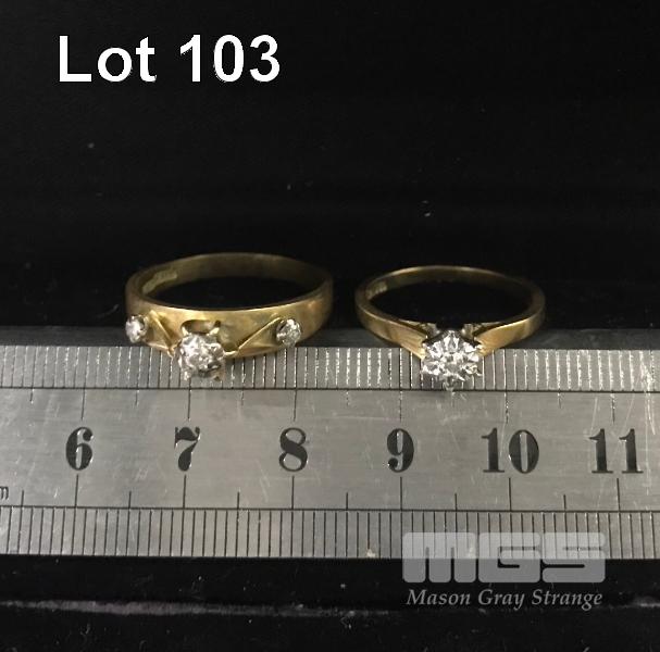 2 X GOLD & DIAMOND RINGS, MARKED 18CT, 1 X SET WITH SMALL DIAMOND 2.9 grams, 1 X SET WITH DIAMOND & DIAMOND CHIPS 4.3 grams TOTAL WEIGHT 7.2 grams