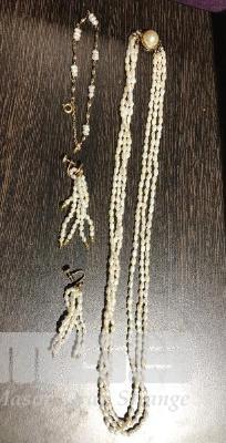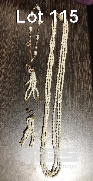 NATURAL FRESHWATER CULTURED PEARL JEWELLERY SET, 3 STRAND NECKLACE, BRACELET & CLIP ON EARRINGS