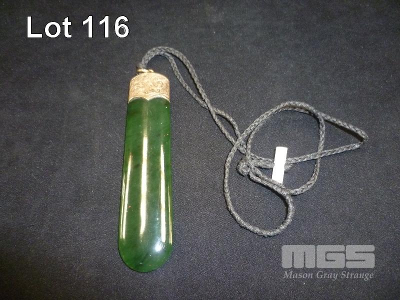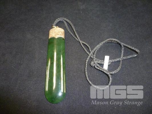 LARGE JADE PENDANT (10 CM) WITH 9CT GOLD TOP ON BRAIDED NECKLACE