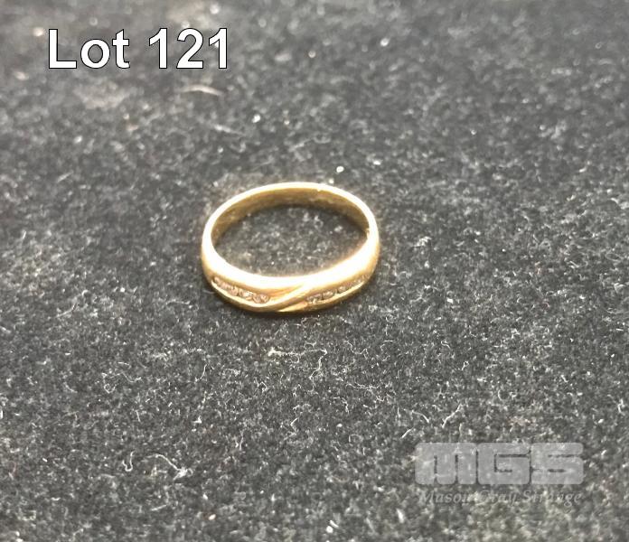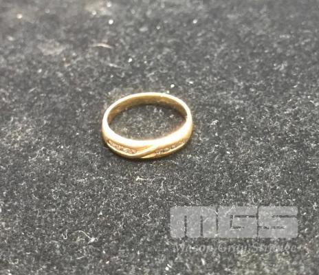 GOLD RING MARKED 750, SET WITH 8 SMALL DIAMONDS 3.6 grams